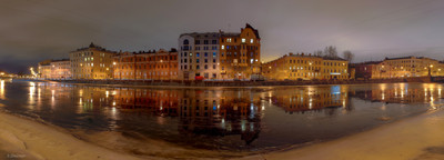 Теплая февральская ночь, Фонтанка, панорама из 6 кадров.