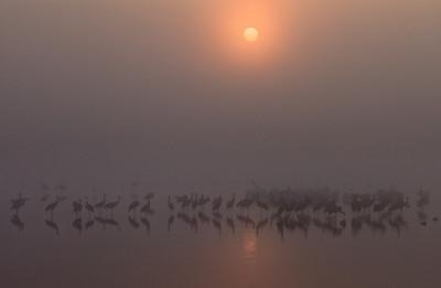 Царство журавлей Снято в заповеднике Агамон Ахула, Израиль. Условия съемки были очень сложные, очень плотный туман, видно по утомленному солнцу. Не знаю насколько справился со съемкой и обработкой, вам судить. Экзиф прилагается... |