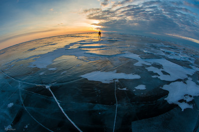 Между землей и небом, между ночью и днем. На восходе. Байкал. Март.