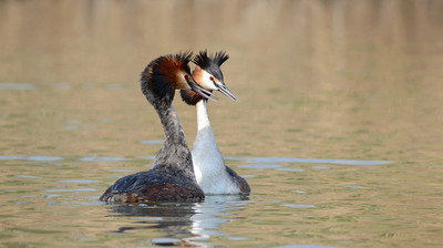 Красиво танцуют чомги!!!... Так рано вернулись в родные края?!