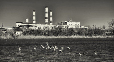 Очень живая картинка.Контрапункт-белый цвет. Трубы, птицы.Вспомнилось что еще ангелы тоже белые...