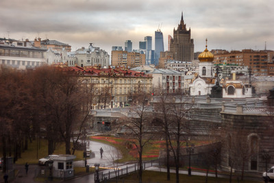 Хорошо в декабрьской Москве, воздух увлажнённо чист, зеленеют газоны!