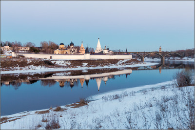 Река Волга. На берегу реки Старицкий Успенский мужской монастырь.