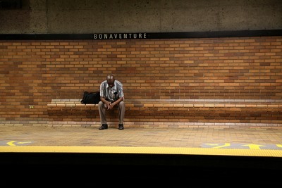 Скорее задумался, если хочешь немного инфо о фото: Вашингтон, станция метро, утро, еще вообщем то рано, но уже совсем скоро на станции будет много народу, час пик, начнется суета нового рабочего дня, она закрутит всех и вся в круговототе обычных дел... А вот остался ли он наедине со своими мыслями, мечтами, желаниями, сомнениями и страхами- на этот вопрос мне сложно ответить, однако его поза и задумчивый вид может говорить сам за себя, хотя это только мое ИМХО, кто то вполне может видеть и интерпретировать все происходящее иначе.