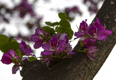 И даже пень,в весенний день... Великолепное впечатляющее цветение баухинии приводит в восторг большинство цветоводов.Из-за схожести формы ее цветков с орхидеями и нежного душистого аромата растение часто именуют орхидным деревом, хотя к известному семейству оно не имеет никакого отношения. |