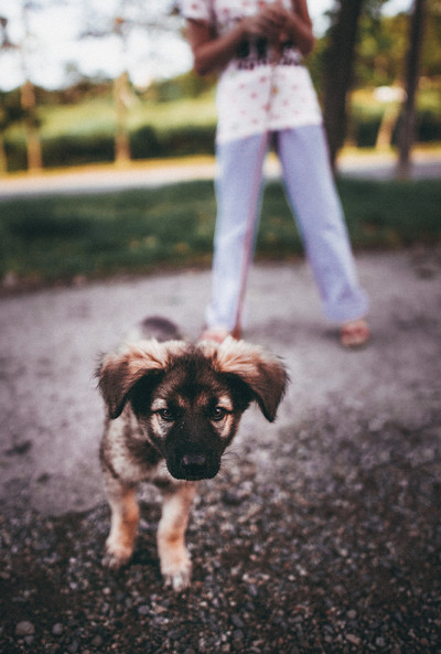 Возвращался после съёмок пейзажей утром. А тут щенок прогуливал свою хозяйку.)