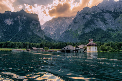 Вечер на озере Кёнигзее. Альпы, Берхтесгаден, Верхняя Бавария.