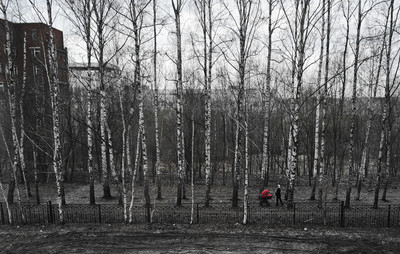 да согласен- можно по разному называть,из пленочных времен это-частичное вирирование-было одно время модно в чб раскрашивать детали. Тут на самом деле почти нет моих усилий.Разве что коляску усилил ,а общую насыщенность приглушил.Обратите внимание на здание на ЗП-оно цвет имеет.