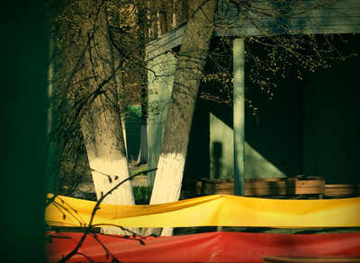 слева я спецом оставляла эту зеленую полосу (хотя она и не в ГРИП, но не суть) - так образуется как бы три полосы (две горизонтальные, одна вертикальная) красный-желтый-зеленый. Ну, и другие объекты отвечают зеленым своей зеленью )