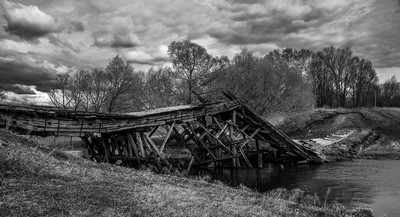 старый разрушенный мост.