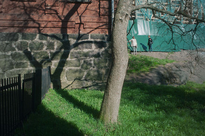 В обсуждении, что как и на чем держится и нужны ли части, многие упустили момент, что наряду с объемной левой частью, что подчеркнуто фактурой, светом, тенями, присутствует правая , которая визуально этого объема лишена, как и лишена перспективы, дерево, тень, ветви являются связью, соединением этих частей в единое целое. Логически понимаешь, что фигуры отдалены, но картинка подает мир иначе, что и есть заслуга автора.