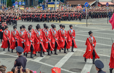 Кубанские казаки. Торжественный парад. 71-я годовщина Победы в Великой Отечественной войне. 9 мая 2016 год. Краснодар. |
