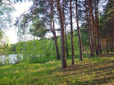 Закат у лесного озера
