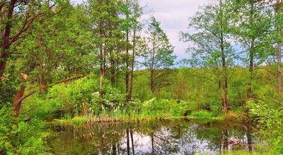 начало лета, небольшой пруд, рядом лес и дорога, красивый вид
