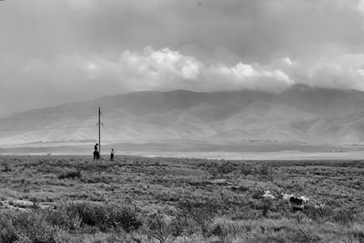 Александр Zeonoff, Александр Зеленский, Сергей, Здря вы так...здря,....композиционно выверено до миллиграмма - два друга ..(с ишаком) уровновешивают баранов( кстати, у нас на юге Казахстана к ним( баранам) трепетное отношение( шашлик, бишбармак...).Очень объемный фронтальный ПП с дымчатым горно-ландшафтным ЗП создает атмосферу реального присутствия. Вертикально стоящий високо вольтный столб подчеркивает БЕЗУПРЕЧНОСТЬ выбранной оптики! Високо парящий орёль вызивает огромадное чуйство не попранной гордости за судьбу этих двух джигитов к электрофикации отдаленных аулов ... а великолепная стадо баранов подчеркивает любов к изысканной пище!!!