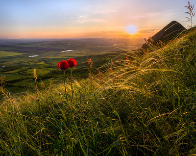 Прицветниковый мак (Papaver bracteatum) уникальное реликтовое растение, эндемик предгорий Северного Кавказа. Растет в основном на склонах горы Бештау, и ближайших гор (Верблюд, Лысогорка и т.п) (регион Кавказских Минеральных Вод), отсюда его второе название — бештаугорский. Ставропольский край. Предгорный район. На горе Верблюд. Конец мая, 2016.