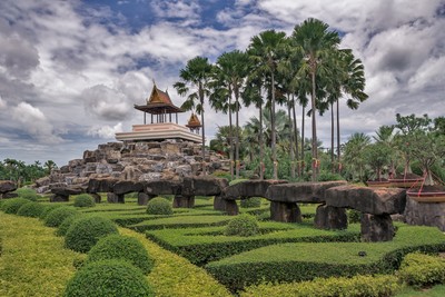 Французский парк в саду Нонг Нуч #1 История парка начиналась вполне прозаично. В 54-ом году прошлого столетия местные земледельцы г-жа Тансача Нонгнуч и г-н Писит купили участок под фруктовые плантации в провинции Чонбури. Он представлял собой 240 гектар холмов и равнин и располагался в 163 км от трассы Сукхумвит. Примерно в это же время госпожа Нонгнуч отправилась в путешествие за границу, в котором так сильно впечатлилась красотами известных во всем мире садов, что тоже захотела создать в своих новых владениях райский уголок. |