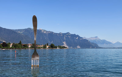 Зачем нужна вилка в озере? Швейцария. Веве. Гигантская 8-метровая вилка из нержавеющей стали (автор - швейцарский скульптор Жан-Пьер Заугг) установлена в озере напротив Музея питания компании "Нестле". Сначала она была поставлена в качестве временного экспоната к 10-летию Музея в 1995 году, сроком на один год. Потом вилку надолго убрали, но в 2008 году после сбора подписей и общественного обсуждения вилке было разрешено остаться в озере навсегда. |
