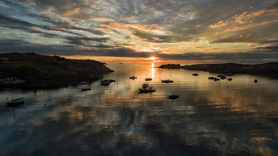 Вспоминая С.Дали Те, кто бывал в доме-музее Сальвадора Дали в Кадакесе знают, что в его спальне высоко под потолком сделано окно, так чтобы он наблюдал восход еще только пробудившись. Примерно так он мог бы видеть солнце, поднимающееся водой, над бухтой Портлигат, над лодками, ожидающими новый день. Этот снимок сделан дроном с небольшой высоты, но точно по направлению от дома Дали к выходу в море и к скалам, которые он так любил. |