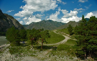 Открыточная местность!!!... Ярко!!!... Но мне кажется река лишняя, и справа большие деревья тяготят!!!... я бы кропнул квадратом(по центру маленькие деревья и захватить одно возле дороги... жаль не знаю как вложить кроп в коментарий)... и облако над горой уж больно кажется пересвеченным... а так ничего!!!...