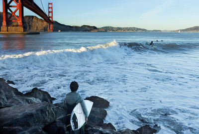 Серфинг у моста Золотые Ворота в Сан Франциско