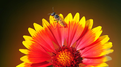 клумба, утро, август, красиво сидит пчелка