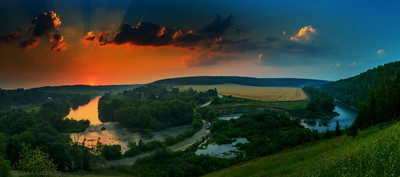 На закате дня Свет и тьма, вроде одна река, а изогнутый мост делит на инь и ян. Красивая Меча, Тульская область. |