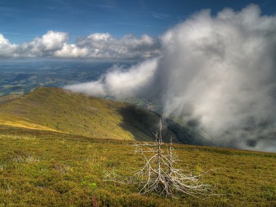 Кучевая облачность Вид с г. Великий Верх (полонина Боржава, Закарпатье). Август 2016 г. «Ах, кучевые облака... Какая странная причуда: Из ничего и ниоткуда Явиться, глянуть свысока И, своевольничая всласть, Лепиться, пениться упруго, И, формой властвуя округлой, С небес на землю не упасть. Ах, кучевые облака... Какая веская причина: Лететь без ранга и без чина, Вперегонки, издалека И, разметавшись, не устать, Синь заволакивая щедро, И, зная тайну превращенья, Так ослепительно блистать!...» Светлана Шаляпина |