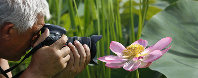 в лодке штатив ,в правой руке кнопка дистанционного спуска и =кадрирование.Лодка стоит в камышах.