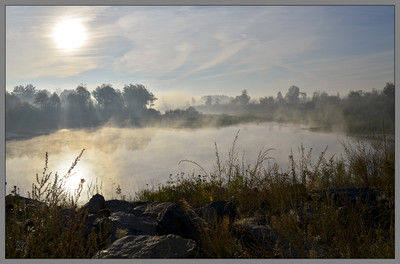 Сюжет беспроигрышный: пруд, утро, туман и т.п. Замечание: небо! Если быть наблюдательнее, то небо не бывает тонально плоским, и дорабатывать его по плотности нужно учитывая это. Передний план также слишком тёмный и контрастный. Попробуйте его выделить и чуть уменьшить контраст. Будет лучше. Всего доброго!