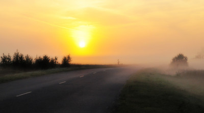 сентябрь, раннее утро, дорога между деревнями в тучане