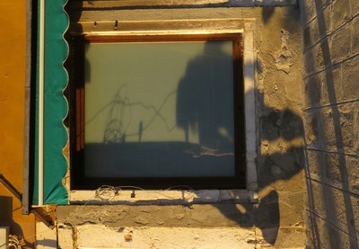 а не здря ли на бочок? А если о тех желтых штанишках в отражении подумать, на предмет их связи и подобий с тенью на стене?