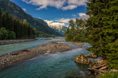 Образуется река Теберда слиянием Гоначхира и Аманауза. Снято по пути из Домбая на Бадукские озёра.
