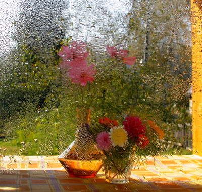 , улыбаюсь...на террасе поставила зеркало и в нем отражение участка..