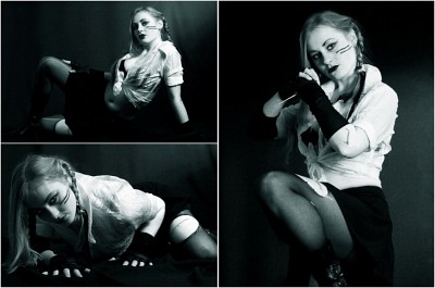 Во-вторых - это не зерно, а текстура ткани такая. На счёт пересветов - на моём CRT мониторе всё ок. На работе на ЖК тож было. Там 2 осветителя рефлектор серебро. Тени углублены были сознательно, для получения более чёткого контраста между белым и чёрным. Фон - обычная чёрная ткань, по этому идеальной поверхности не достигнуть. Да и не хотелось заливать всё однородным ровным фоном (это можно было сделать в ФШ). С резкостью на оригиналах всё в полном порядке, но после уменьшения и сжатия картинки детали теряются... резкость ухудшается...