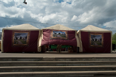 На заглавной в центральной палатке нижняя часть, там, где полог приподнят, получается рифма, почти повторение части картины в раме. На всех остальных ничего подобного нет, просто дама с попой.