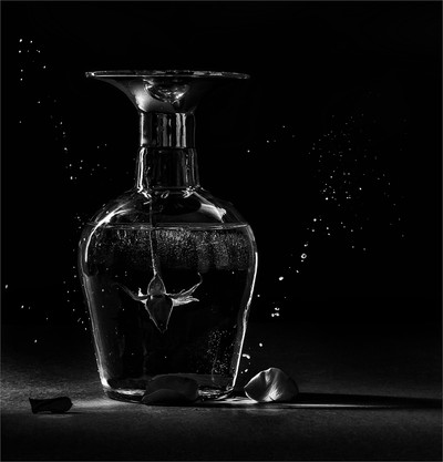 Это бутылка в форме перевернутого фужера, где ножка предполагаемого фужера - пробка бутылки. ;-)