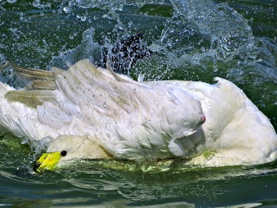 Малый, или тундровый, лебедь (Cygnus bewickii) клюв имеет ярко-жёлтый (лимонный) с чёрным наконечником...