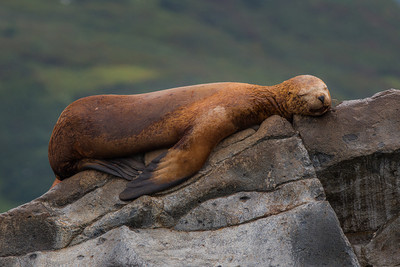 Морской лев сладко спит на одной из скал мыса Кекурный.