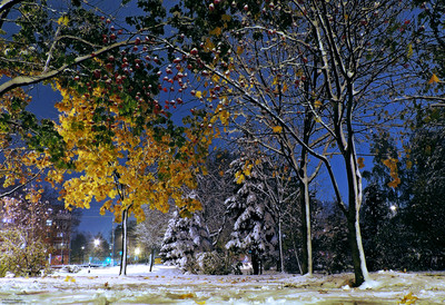 Вечер 26 октября 2016 года после снегопада в Гомеле