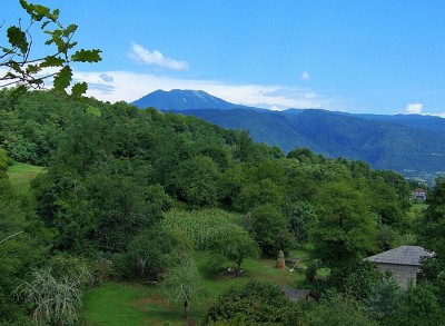 Вид с древней горы-крепости в Абхазии. Древние войны подавали с нее сигнал о нападении близлежащим землям.