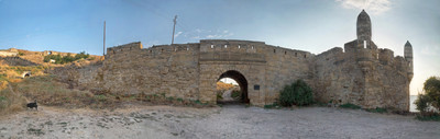 Рассвет на крепости Ени-Кале. Крепость в Крыму на берегу Керченского пролива, построена османами в начале XVIII века. Название в переводе с турецкого языка означает «новая крепость». Август 2016 год. Керчь, Республика Крым, Россия. |