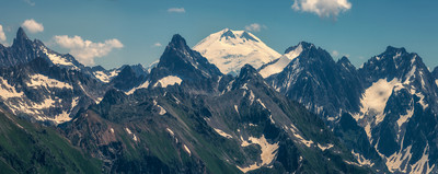 В Домбае нам снова повезло повидаться с Эльбрусом, хотя и не так близко, как в Терсколе.