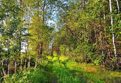 август, вечер, за деревней, лесная просека