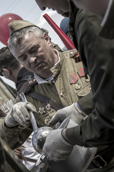 Полевая кухня) В парке в честь празднования Дня Победы звучали песни военных лет, выступали военные оркестры.В обед каждый гость парка мог попробовать блюда настоящей полевой кухни: гречневую кашу с тушенкой и ароматный сладкий чай с лимоном. Было очень вкусно! |