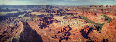 Dead Horse point state park. Парк Мертвой лошади называется так, потому что в начале 20-го века на плато паслись стада мустангов и ковбои использовали эти это место в качестве естественной ловушки. Они загоняли сюда мустангов и перегораживали узкий, десятиметровый перешеек, ведущий на плато, высокой изгородью. Потом, выбрав и заарканив лучших скакунов, оставшихся лошадей выпускали и мустанги уходили на свободу. Но однажды, по какой-то причине лошади остались в загоне и не имея возможности спуститься к реке на водопой, бедные животные погибли от жажды.