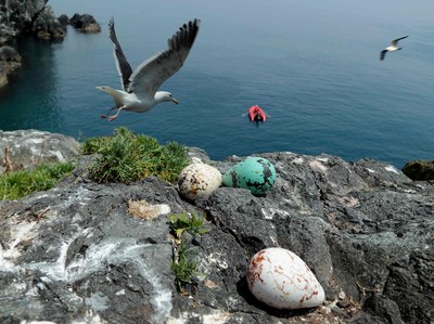 Чайка, после неудачной попытки своровать яйцо кайры.