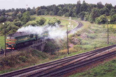 Автор работы, исключительно ИМХО: плоская, ЗП и ПП прорисованы одинаково, неинтересное световое решение, жестко по обработке, не оставляет простор воображению зрителя: сказано все. Нравится геометрия ж.д. путей и наклон всей картинки влево за идущим поездом. Голова наклоняется рассмотреть, это прикольно. Вся картинка похожа на игрушечную железную дорогу. Ну немного надымили.