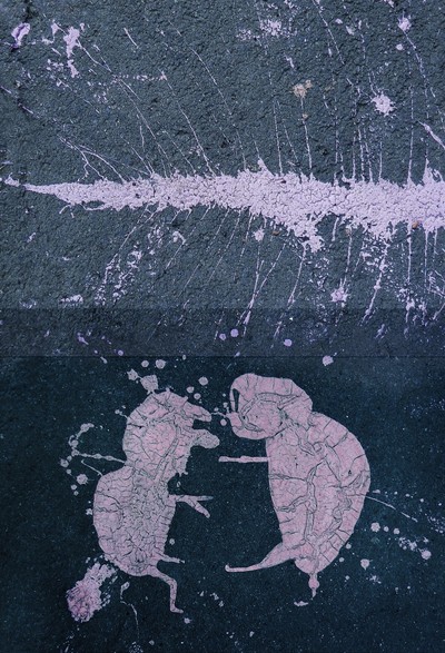 дети красили школу и оставили после себя лужицы краски, послужившие основой данного диптиха