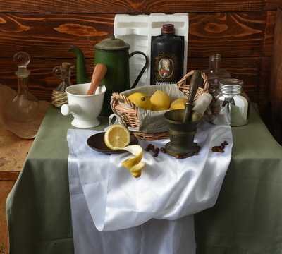 Натюрморт с подсыхающим, но ещё живым лимоном. /А всё остальное - бутафория/ - ШУТКА...